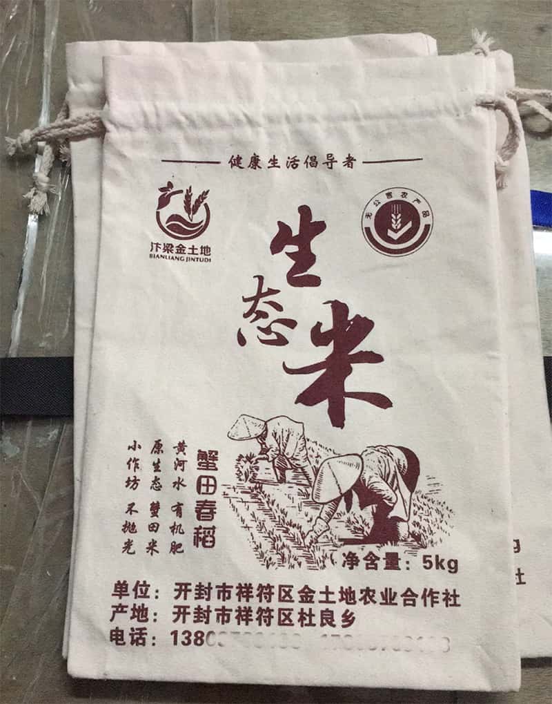 回复帆布大米袋1000条起订,量大价格更优,欢迎联系电话或加微信:15838231350咨询。