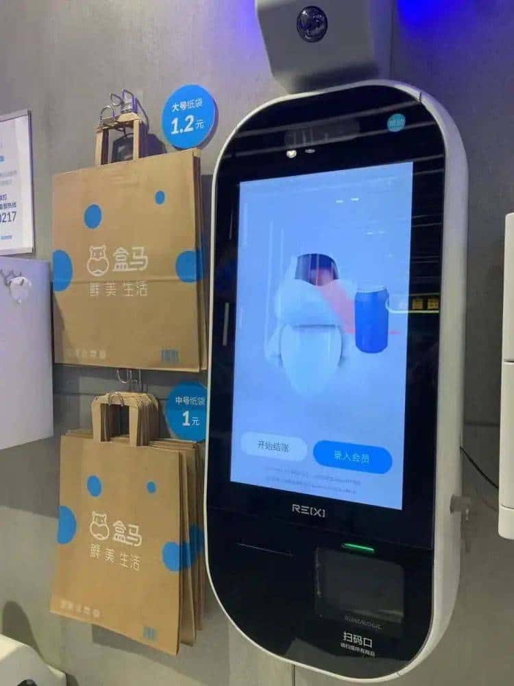 最近去盒马购物的顾客都能看见,收银机边的袋子已经从塑料袋换成了纸袋。