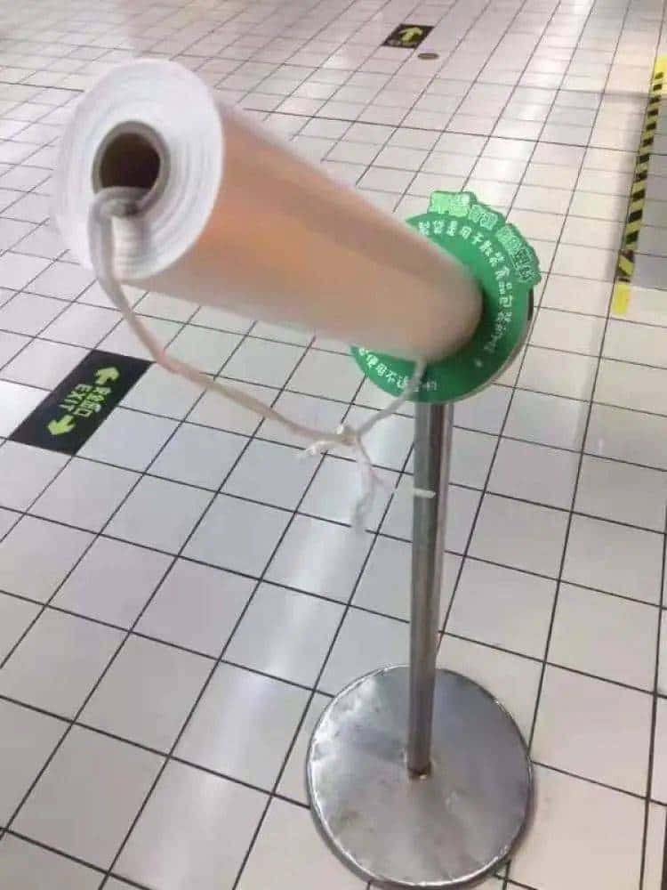 在家乐福,连卷袋旁底座已有提示不适合作为购物袋使用。