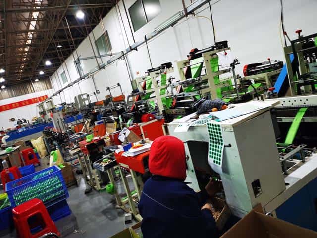 ▲工人正在车间生产可降解塑料袋。