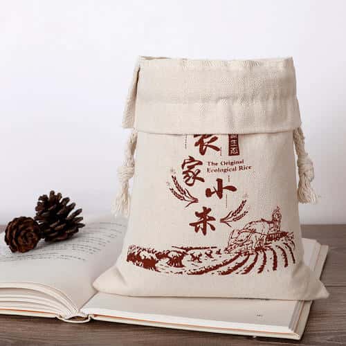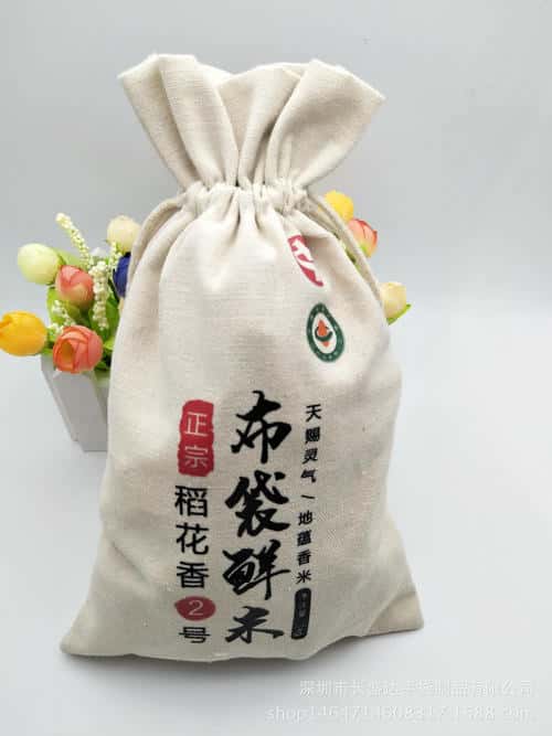 原生态大米帆布束口袋包装展示