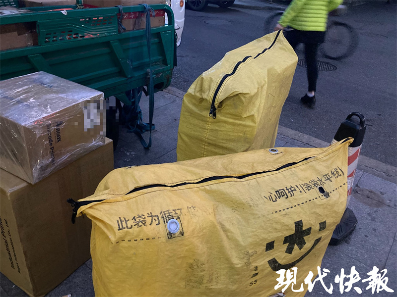 在另一处快递点外,工作人员正在运件。该网点负责人称,分拣使用的袋子可以重复使用,袋子一般半个月到一个月更换一次,里面可以装二三十件小型包裹。东南大学四牌楼校区附近的一处快递点外,还设置了一个绿色的回收箱,记者看到里面装满了纸盒等物品。一名工作人员说,回收箱已经放置了一段时间,里面的纸盒会被二次利用。