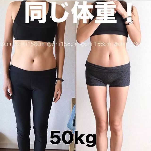 chii表示自己虽然锻炼了两年,但体重真的没有太多变化,之所以视觉效果相差那么多,完全是因为脂肪含量减少了,肌肉含量增加了。 看看不同阶段的50kg,也许你对体重的数字,会有更客观、更理性的解读。