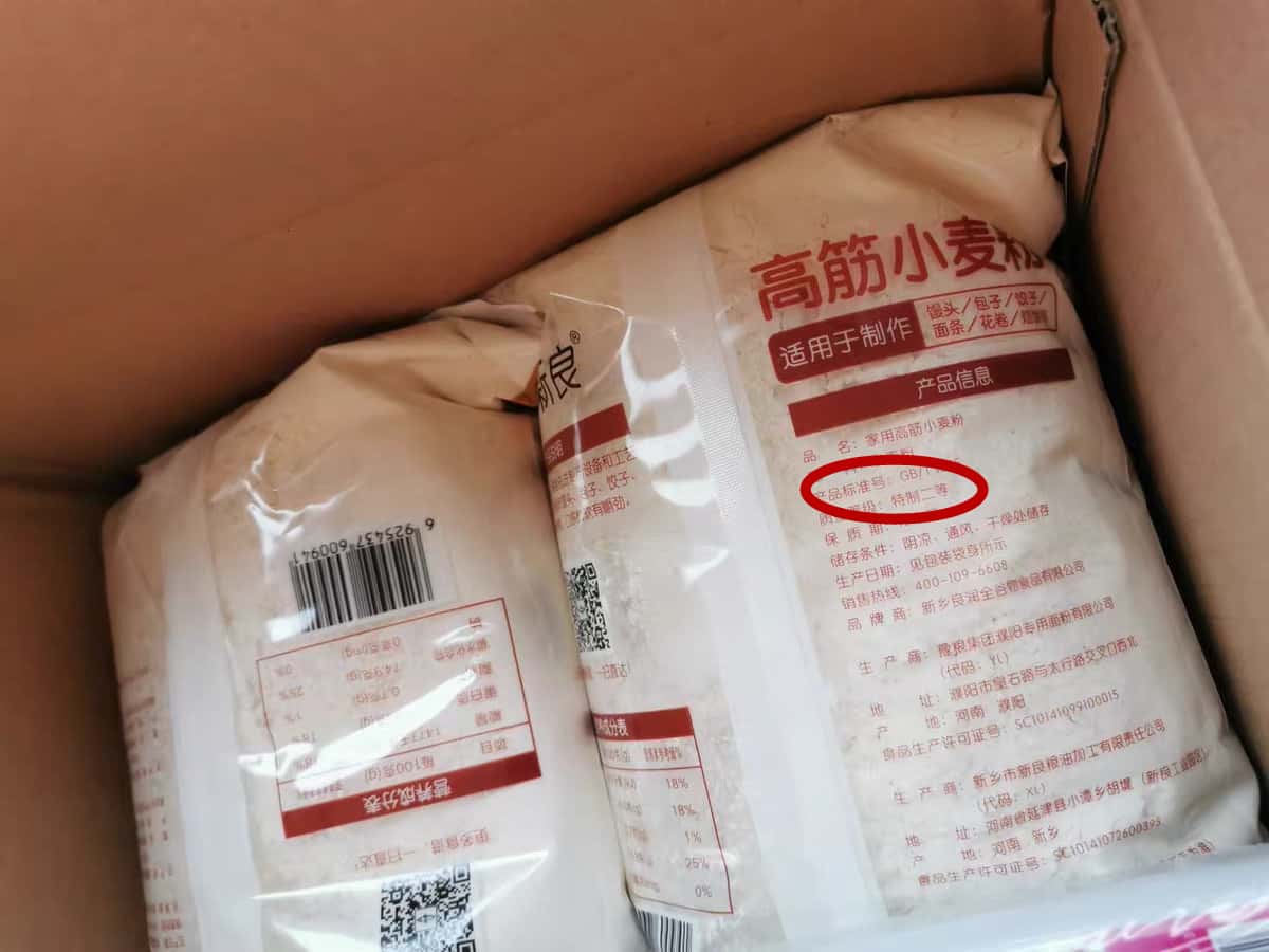 现在市面上的面粉大多都是成袋售卖,购买时很难打开挑选,所以在购买时,我们可以看包装袋上的国家标准号,每种面粉都有自己的“身份证”,能证明面粉的等级、好坏,保证面粉的质量。