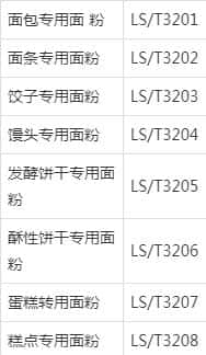 然后就是各种“专用面粉标准号”,所谓的专用面粉,就是根据所制作面食的需求,针对性地添加了一些辅助添加剂,利于面食的制作。此“专用小麦粉”的标准号以大写的“LS”开头,分别有以下几种。