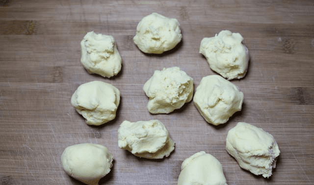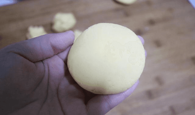 5,把小面团团成表面光滑的面球,然后用手压成小饼。