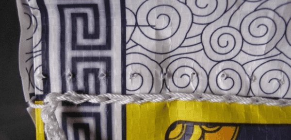 4.理出一个头儿,轻轻一拉,面粉袋就会打开了。