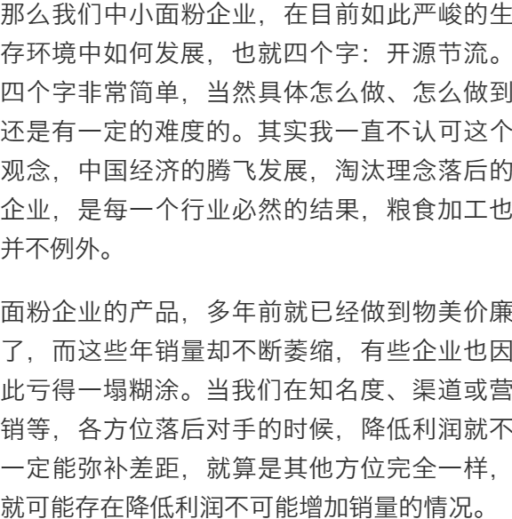 我们面粉企业要有清楚的市场定位、产品方案,充分了解自身资源优势,针对某一个点集中发力,以点带面。