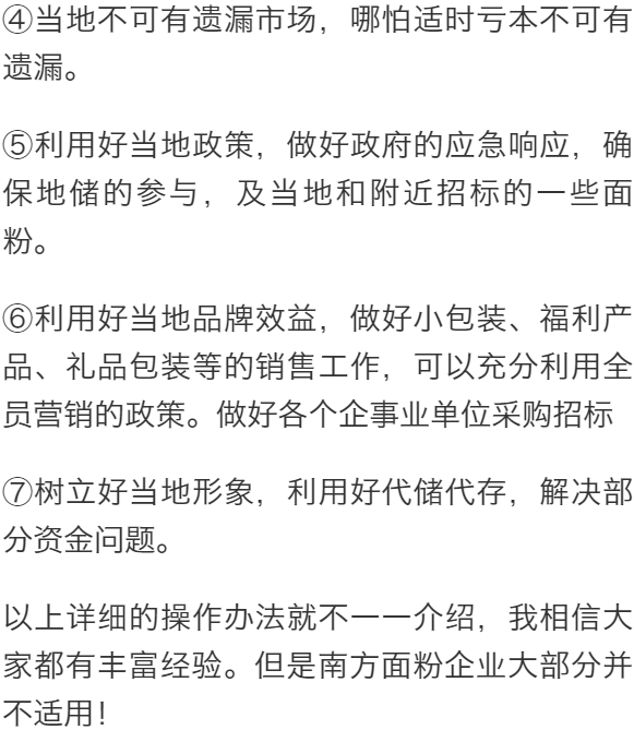 对于当地市场的拓展和升级,存在一个必要性,而且非常适用于北方面食为主的地区,如果是南方面粉企业,这一点基本可以忽略。
