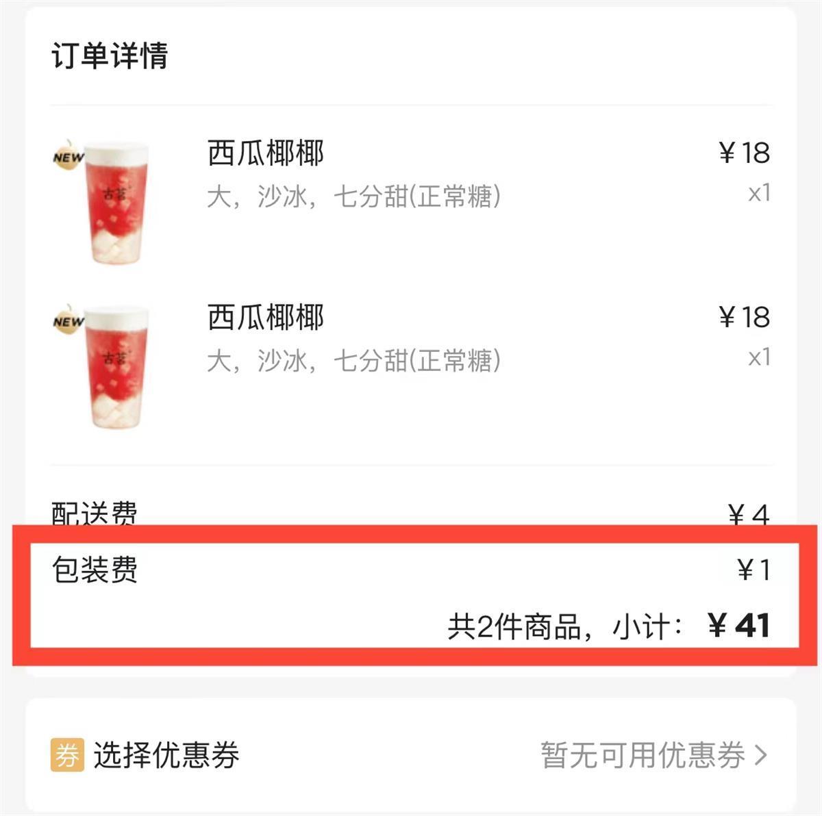 古茗小程序外卖强制收取包装费
