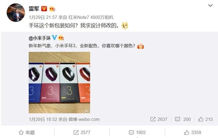 劳模雷军有多重视产品包装的细节,从他另一则微博中就可以看出来。小米手环推出前,包装设计师被他逼着改了好几版,据说设计师都快被逼疯了。小米对包装的重视程度可见一斑!事实上,当年小米手机问世前,就在包装方面下了一番功夫,听说当时产品研发负责人考察了上百家包装厂,才选择了一家设计能力不错的公司作为合作伙伴,很多包装老板至今仍对没吃到小米耿耿于怀。