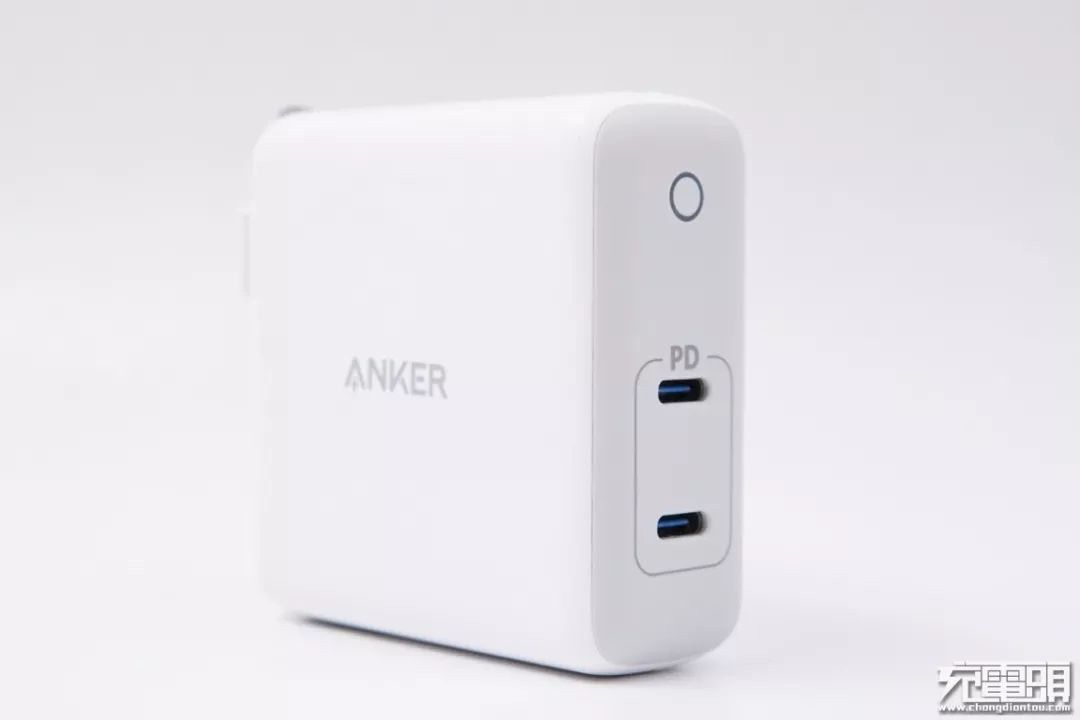 ANKER出品的产品大多数造型相似,比较圆润,本次上手的ANKER 60W PD GaN 双口充电器也不例外,周身没有棱角,边缘全部圆角处理。充电器主体使用阻燃塑料材质、整体呈白色,中央印制“ANKER”字母LOGO。充电器表面钢琴烤漆工艺,触感顺滑,然而很容易成为指纹收集器。