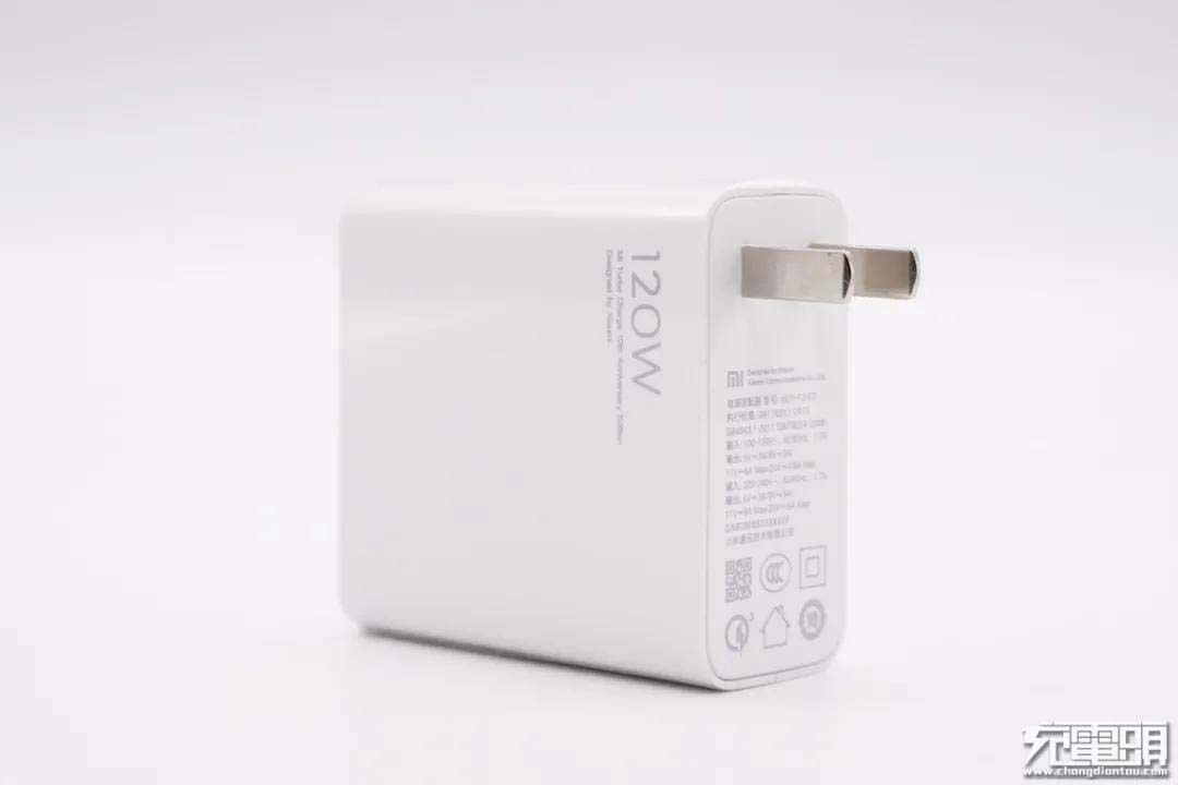 小米10至尊纪念版标配120W魔改快充充电器,采用PC阻燃材质白色外壳,整体设计风格简洁,充电器腰身亮面设计,输入输出端外壳磨砂处理,此外配备固定式国标插脚。