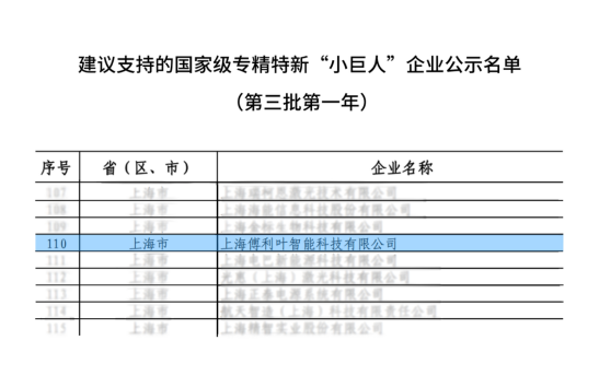 近日,国家工业和信息化部公布建议支持国家级专精特新“小巨人”企业(重点“小巨人”企业)公示名单(第三批第一年),全国546家企业中上海市入围20家。上海傅利叶智能科技有限公司(简称“傅利叶智能”)凭借创新能力强、市场占有率高、掌握关键核心技术、拥有国内外注册证书、质量效益优等实力,成功入选国家级专精特新重点“小巨人”企业,意味着傅利叶智能的科技创新能力和技术研发实力获国家权威认可。