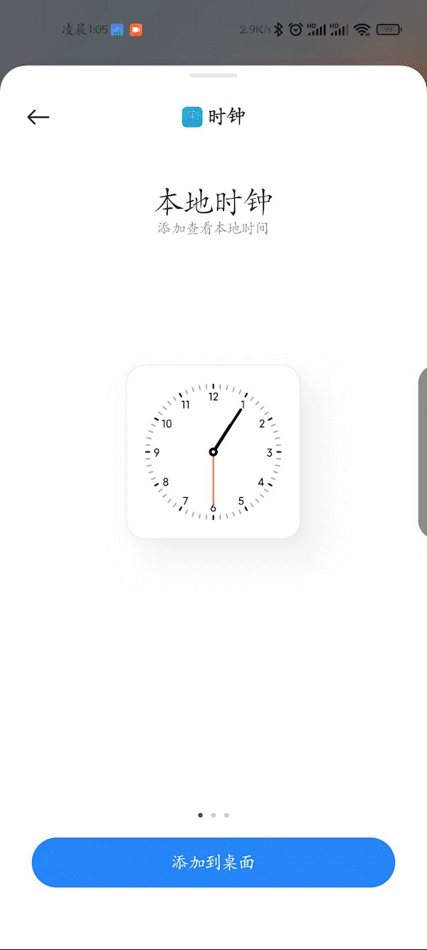 点击下方的“添加到桌面”,这一小部件就会以卡片的形式被添加到桌面,都是圆角化矩形块的设计,而且被添加到桌面还会有动画效果,就像下图这样。