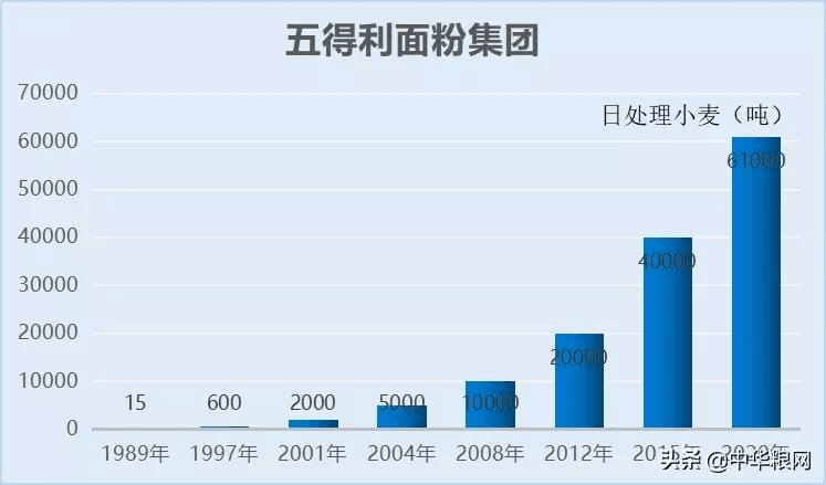 作为一家专业化生产面粉的民营企业,经过三十二年的不懈努力和实践,五得利面粉集团从一个日处理小麦能力不足15吨的作坊式小厂,发展成目前拥有六省十八地18个子公司,日处理小麦能力达61000吨,年加工能力超过1800万吨,世界最大的面粉加工集团。