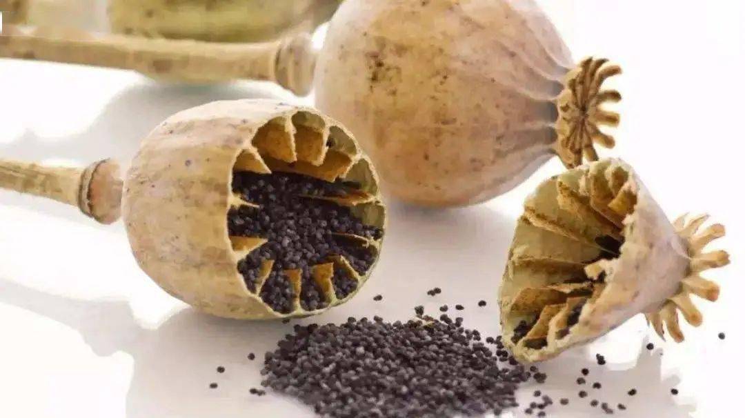 而罂粟壳在外形上和草果有着很多的不同。罂粟的果实圆而光滑,好似一个瓦罐,里面装着如小米一般的种子。并且它的顶端,具有一个扁盘,边缘呈放射状,好似戴了一顶皇冠。这其实是罂粟的柱头彼此联合而成的。当罂粟果实成熟时,这顶“皇冠”之下会裂开一圈孔道,褐色的小米般的种子就从这些孔道中掉落出来。