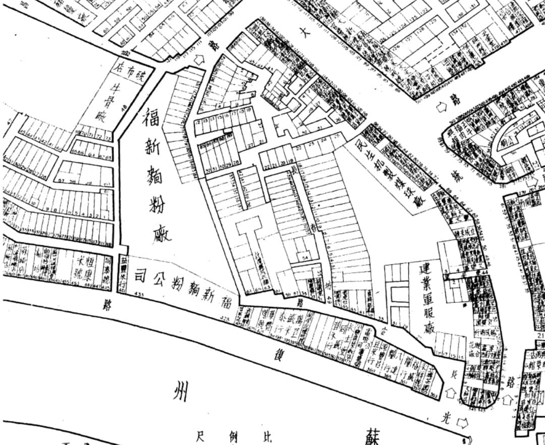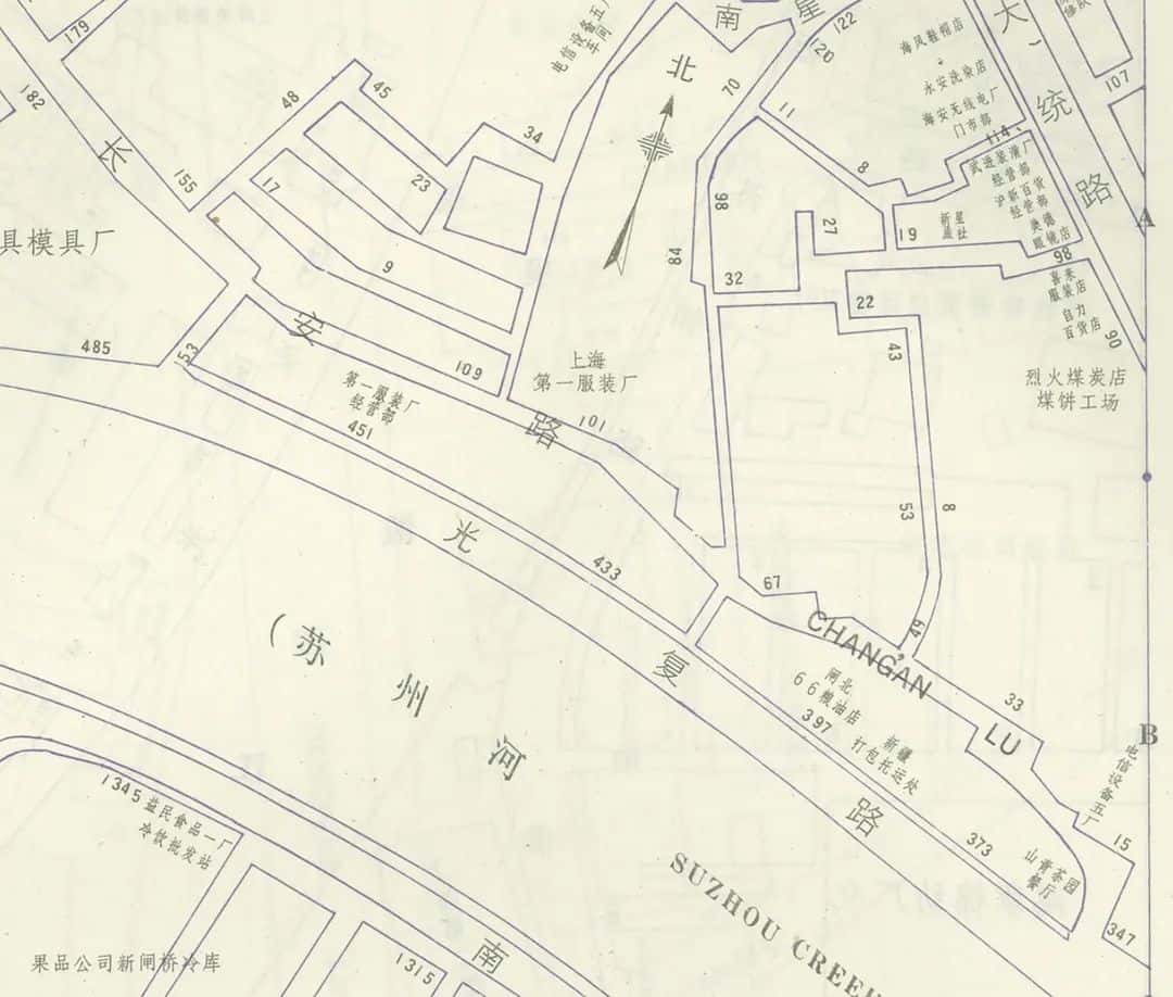 1989年地图中的福新面粉公司(图中上海第一服装厂所在位置)