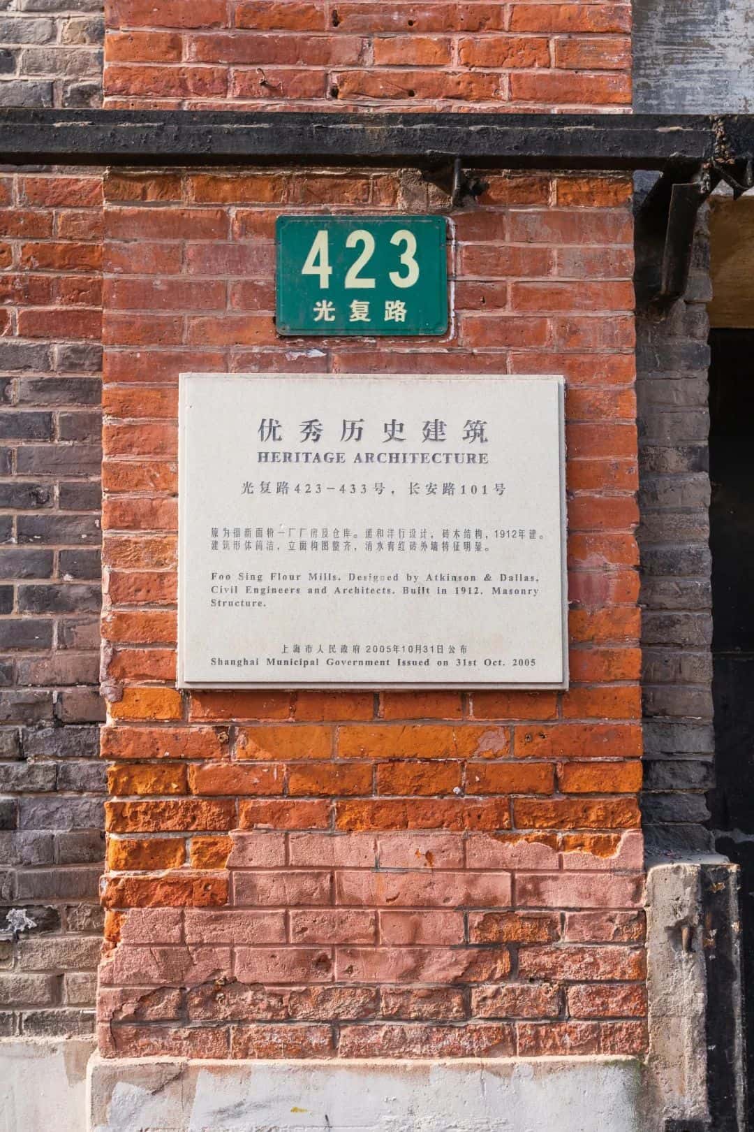 今日的福新面粉公司保留建筑及“优秀历史建筑”铭牌