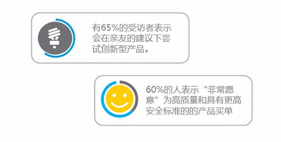 在竞争激烈的中国零售市场中,品质类产品成为了销售增长的新亮点,促使各品牌紧随潮流,争先创新。尼尔森报告显示,在参与调查的中国网络用户中,有65%的受访者表示会在亲友的建议下尝试创新型产品。同时,中国消费者更愿意为高质量和具有更高安全标准的的产品买单,有60%的人表示“非常愿意”这样做,有37%选择了“比较愿意”。
