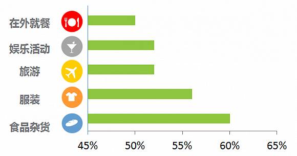 同时还应注意的是,中国消费者认为,在过去五年内,他们主要增加了在食品杂货(60%)、服装(56%)、娱乐活动(52%)、旅游(52%)和在外就餐(50%)方面的花费。这表明,中国消费者在过去五年中越来越关注提升生活品质,而未来的增长行业可能仍与提升生活水平紧密相连。