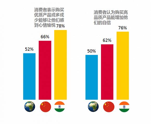 尼尔森研究发现新兴国家消费者大多在购买某品质类产品时会考虑该产品是否可以有助于体现其较高的社会地位。约半数的中国消费者认为,购买品质类产品是在向他人展示自己的高品味。