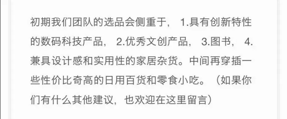 对于初次直播登场的品牌来说,老罗带来的价值远不止带货本身。搜狗公司CEO王小川在接受AI财经社采访中提到:“我们不看重他的带货能力,主要是想通过他把AI的技术和理念传递给他的粉丝。”“老罗的特殊在于他对科技的匠心和理想主义。”-02-知识型KOL直播带货,和食品行业有什么关系?为什么老罗说“如果你从来没在直播电商买过东西,那是因为你没看过我们做的”?我们对比当前头部主播来看。无论是李佳琦经典的“给我买它”、“OMG” ,还是他和小助理的互动,自家几只狗狗的高频出现,都给观看者一种更趋向于看综艺的体验。而薇娅主要带的货都是一些高频低价的实用日用品。她以励志坚强的现代女性、温暖大姐姐的人设,抓住了那些需要一个奋斗榜样,想精打细算过品质生活的女孩子们的心。李佳琦的粉丝叫2+7(爱佳琦),薇娅的粉丝叫薇娅的女人们。从称号就可以看出观看受众对主播的情感依赖性较大,购物体验偏感性消费。可是不通过看李佳琦和他的小助理和狗狗消磨时光,也不愿意浪费自己的宝贵闲暇时间看直播来获得日用品折扣的,大有人在:这些人会在买手机家电时在网上看攻略,会在食品的选择上关注最新的营养学健康趋势。他们可能不会把直播当作一种娱乐方式,或者把主播当作自己的精神榜样,也并不是所有的消费品都能让他们看直播。但在一些诸如健康食品等重要品类上,他们同样需要引导。这群人的需求,之前的直播行业并没有完全满足。罗永浩的加入预示着:直播行业要开拓和培育理性消费群体了。我们来看看罗永浩团队的选品标准是什么: