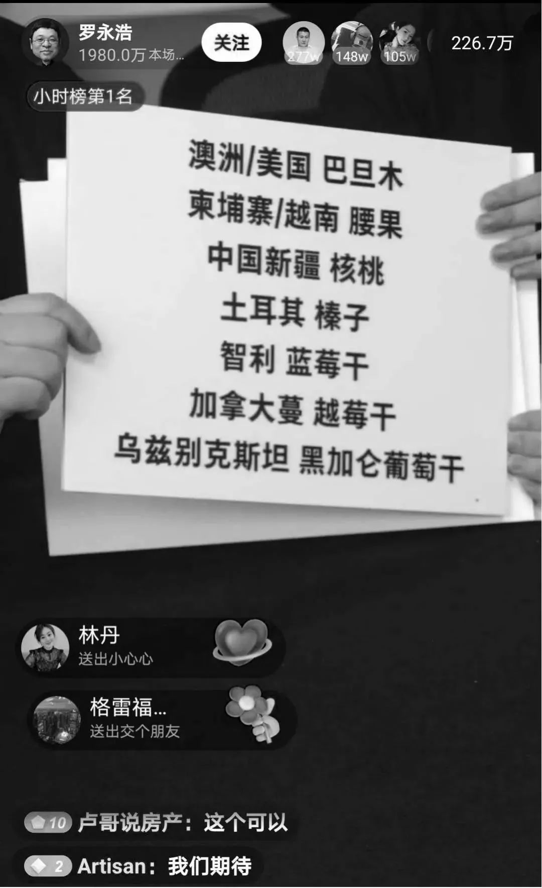 而在前天晚上,当大家抱着看老罗卖小米的看热闹不嫌事大的心情进入直播间,看到的竟然是...老罗又在卖坚果!!!!