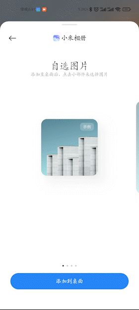 “自选图片”小部件可以在相册中挑选自己喜欢的图片添加到桌面,还支持横排和竖排等多种显示方式。