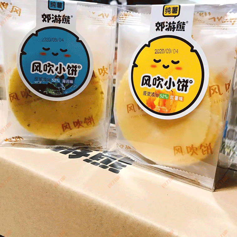 郊游熊风吹小饼:红薯味风吹小饼、海苔味风吹小饼公司:龙海市薯我香食品有限公司品牌:郊游熊公司简介:本公司致力于原生态粗粮加工,高严格品控. 原料甄选于漳浦六鳌优质产地蜜薯、颗新鲜干净、系列齐全、规格众多!公司产品:红薯味风吹小饼、海苔味风吹小饼包装形式:盒装系列