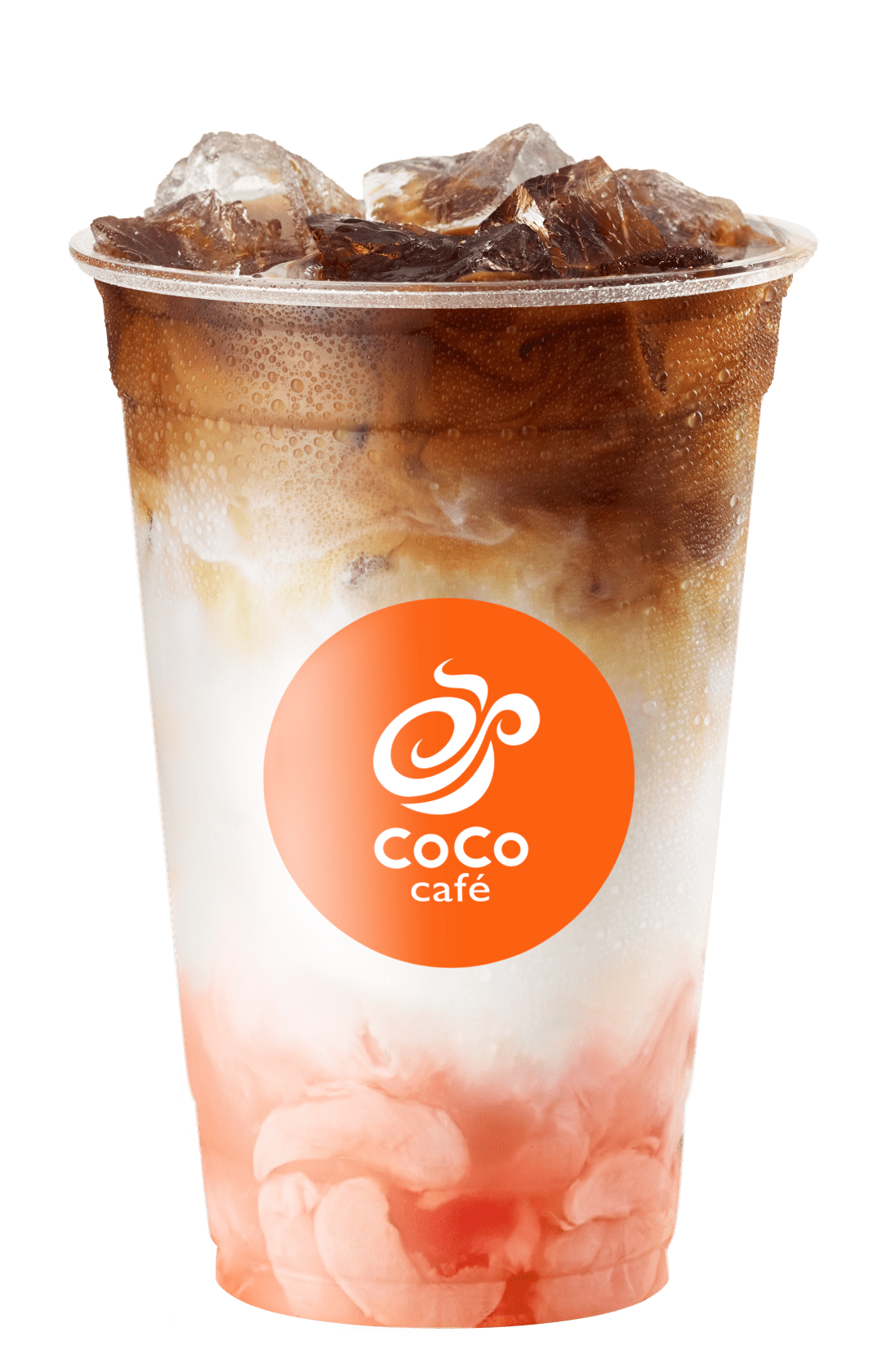 樱花粉荔拿铁咖啡,CoCo金奖拿铁咖啡搭配白白嫩嫩的荔枝果肉,入口醇香,一秒感受春日樱花气息~
