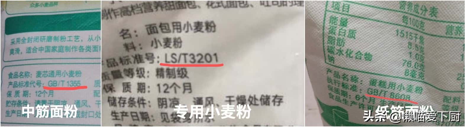 看完面粉类型,接下来要看的第二行字,就是面粉的执行标准号。咱们国家有规定,面粉袋子上需要标明该面粉执行的国家标准。换句话说,通过这个执行标准号,我们一是能看出面粉所属的类型,二是能确认这个面粉是否符合国家相关标准,是否为合格的面粉。