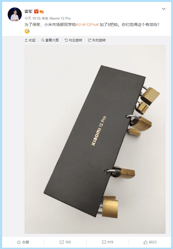 核心配置方面,小米12/12 Pro全系搭载了骁龙8 Gen1芯片,也均采用了高素质的屏幕,还有IMX 766/IMX 707的主摄,相当的强,而下面就看一些外围配置及其他的细节如何了。今天,雷军送上了小米12 Pro的包装盒,有意思的是,出于保密的考虑,该包装盒的外面加了8把锁。