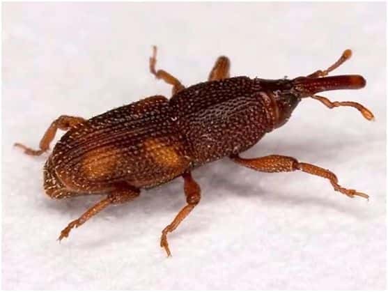 这种虫子,叫做米象。因为它身长3-4毫米,口器就有1毫米长,像长长的大象鼻子。