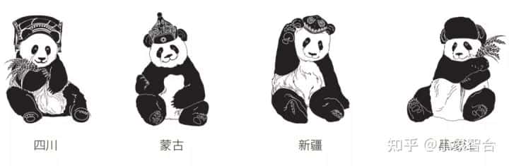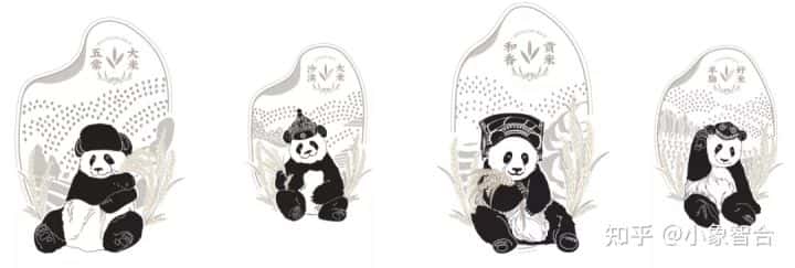 本次的产品——大米,分别来自不同的四个知名的大米产地,提取各省份简称,融合地域元素特征进行字体设计;使用品牌核心元素熊猫“迈迈”,并提取四个省份极具民族特色的帽子作为装饰,让包装更具地方特色、体现亲和力,体现了项目要求的地方特色。