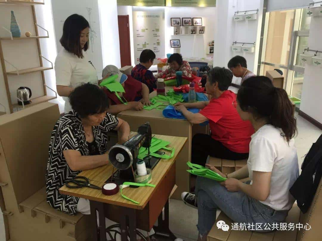 准备材料:无纺布袋,剪刀,缝纫机,针线。达成目标:悬挂收纳袋。9点刚过,通航社区党群服务中心二楼的绿城妈妈就坐满了居民。社工跟大家明确今天的主题之后,大家就共同忙碌起来。有负责用剪刀裁剪的,有负责折叠环保布袋的,有用缝纫机进行拼接的。不一会儿的功夫,大家就做出来十几个漂亮又实用的悬挂收纳袋。