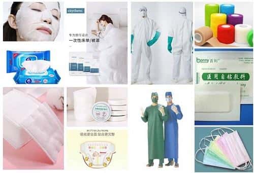我们日常生活中使用的很多一次性卫生用品都用到了无纺布,比如一次性床单被套枕套、一次性睡袋、一次性内裤、压缩毛巾、面膜纸、湿巾、棉柔巾、卫生巾、纸尿裤等。医疗行业的手术衣、隔离衣、口罩、绷带、敷料、包扎材料等也都离不开无纺布。此外,家里用的墙布、地毯、储物盒、吸尘器滤袋、隔热垫、购物袋、衣物防尘罩等,汽车里的地垫、车顶棚布、车门内衬、过滤器的滤布、活性炭包装、座椅套、隔音减震毡、后窗台板等也广泛使用无纺布。