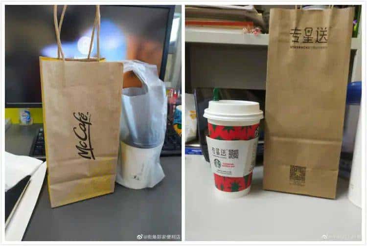 麦当劳(麦咖啡)和星巴克的纸袋子大家非常熟悉啦~