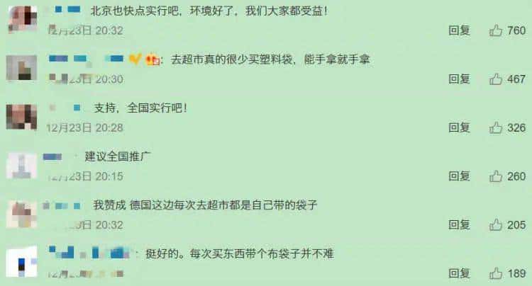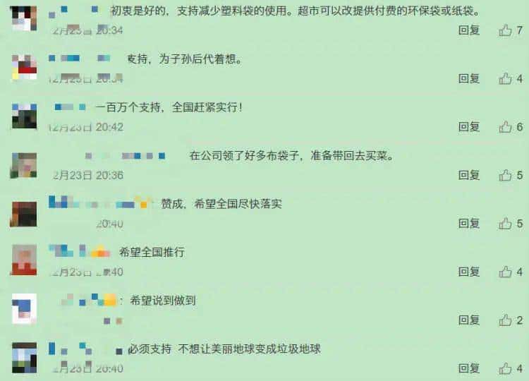 对于商场门店、餐饮打包外卖即将全面停用普通塑料袋的消息,大多数网友表示了支持。有的说“为子孙后代着想”,有的已经在公司领好了布袋子,还有人呼吁“全国推广”。