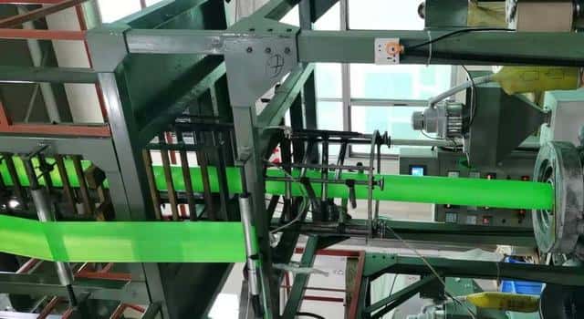 ▲生产车间内,机器正徐徐运转,一个个可降解塑料袋随即诞生。
