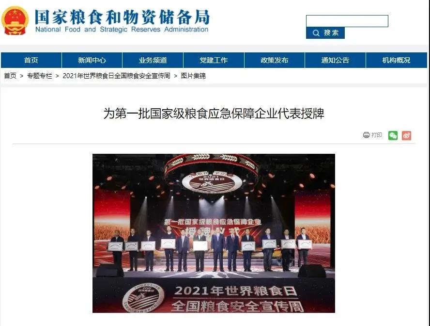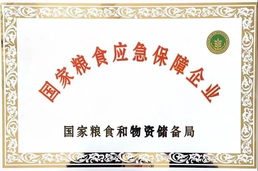 在2021年12月13日下午获得国家第一批国家粮食应急保障企业代表授牌企业。