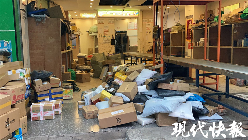 位于网巾市附近的一处快递点内,堆放着一些快递包裹。一名工作人员介绍,目前快递的包装方式要根据客户寄的东西来定,正常物品如衣物等包裹,就是在衣物原有的袋子外面再套上一层防水袋。
