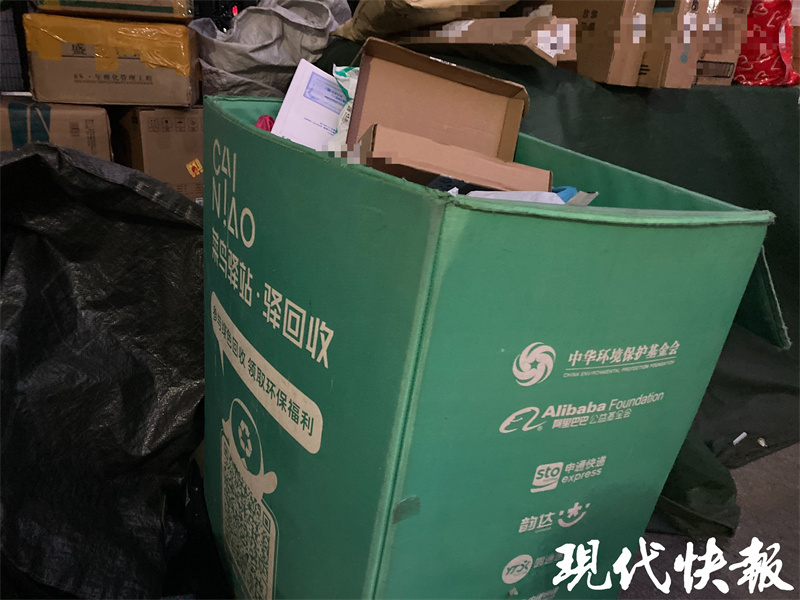 在另一处快递点外,工作人员正在运件。该网点负责人称,分拣使用的袋子可以重复使用,袋子一般半个月到一个月更换一次,里面可以装二三十件小型包裹。东南大学四牌楼校区附近的一处快递点外,还设置了一个绿色的回收箱,记者看到里面装满了纸盒等物品。一名工作人员说,回收箱已经放置了一段时间,里面的纸盒会被二次利用。