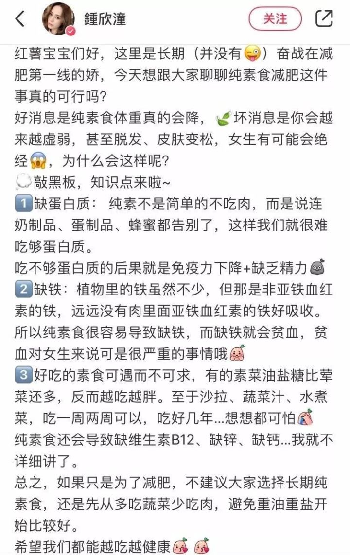阿娇也曾说过纯素食的减肥方法不可行哦。 虽然只吃素可以明显看到体重下降,但长期下来会导致身体素质下降,容易脱发,皮肤变得松弛,女生甚至有停经的风险。