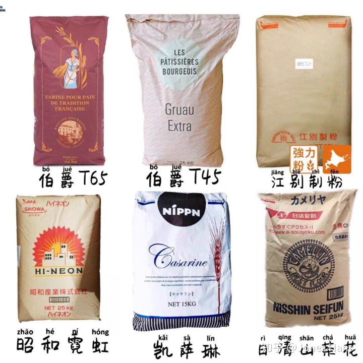 高筋粉评测日均1万+的日式面包屋在用什么粉#科普文# 首先给大家科普一下关于面粉的一些基础评测指标 ️1.色香味 ️2.加工精度 ️3.粗细度 ️4.水分% ️5.灰分 灰分是一种化学分析方法,就是将小麦粉完全燃烧后的灰烬残余物 ️5.蛋白质 ️回到标题 首先是店里用的️吐司粉️ 日清山茶花 分装价格约50元/2.5kg 1.灰分含量0.37%左右,在日本属于特等粉,受国际承认 2.有独特的麦香 3.吸水性不错 4.蛋白质含量11.8%左右 日清山茶花1kg天猫价格39.9,可以领到15元的券,分享个买高筋面粉优惠的办法 写到吐司粉怎么能不提另外3种高粉,插播一段 昭和霓虹粉(分装价格约55/kg) 1.灰分在0.38%左右,特等粉 组织细腻 颜色良好 2.有一定的麦香味 3.吸水性也不错,感觉比日清差一点 4.蛋白质含量11.9%左右 凯萨琳(分装价格约90/2.5kg) 1.灰分0.35%左右 2.天然香味 3.吸水性好 4.蛋白质含量11.6%左右 凯萨琳虽然是圈内公认的制作吐司的上等选择,拥有“流泪吐司粉”的称号,但是性价比不是那么高呀,花花个人有测评过山茶花和凯萨琳做的吐司,差别并不明显,按照性价比等多方因素,花花更推荐山茶花。 江别制粉(分装约130/2.5kg) 图片是梦的力量,他家更好的是煉瓦感兴趣的自己去搜搜看看。 1.灰分0.45 %左右 2. 清爽的味道(嗯,怎么形容呢,自己体会) 3.吸水性好 弹性高 4.蛋白质含量11.5%左右 银座火的排队王CENTRE 家用的就是江别和凯萨琳 写到这里大家有没有看出来,日本的粉的蛋白质含量都不高,这里又涉及刚才提到的灰分,面粉的灰分越低,小麦精制程度就越高,蛋白质含量就越低,做出来的面包就越细腻、柔软。在我国,灰分含量小于等于0.7%就可以算作特质一等粉,而在日本的分级体系中,只能算三等粉,所以为了让吐司更柔软,所以更追求精制度,毕竟我们亚洲人更喜欢吃细腻柔软的面包。 ️图二中还有两种粉 伯爵T65和T45 “T”的意思是法文中“Type”,意思为“种类”。后面的数字是指,100g小麦粉燃烧后的残余灰的重量0.4~0.5g之间,就是T45,T55则是0.5~0.6g之间。 像T65 T55常常用来做硬欧 T45是丹麦专用粉 另外店里全部的甜面团用的是山茶花,你可以这么理解以上写到的吐司粉用来做甜面团都是OK的。