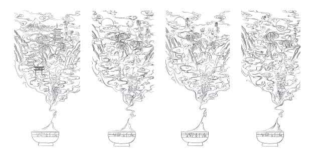 包装风格是浓浓的中式插画风。猴子,麋鹿,塔等富有中国特色的元素被应用到插画中,充满灵气,有种神话传说的味道。