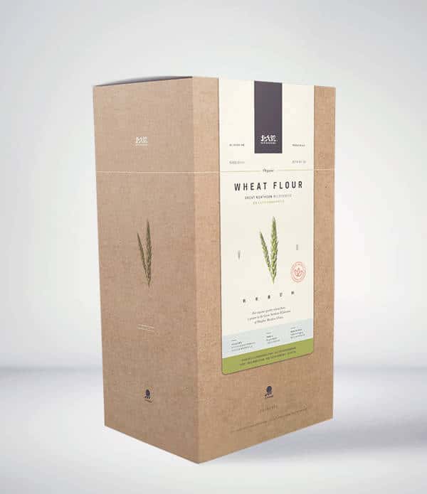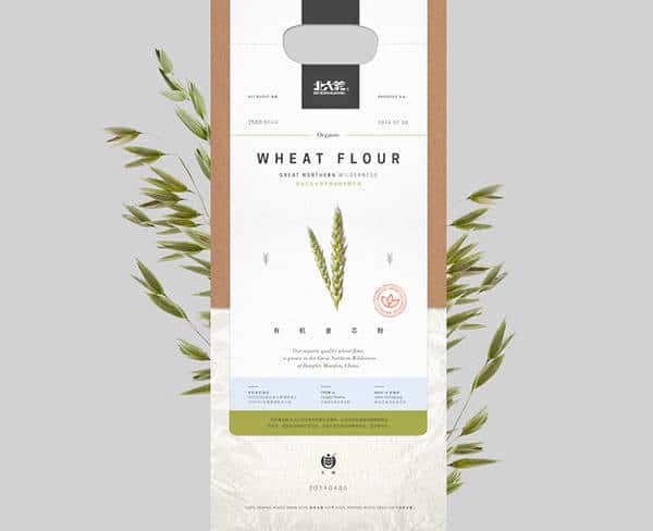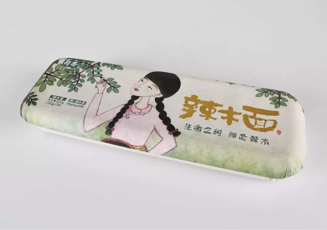 青城干面的包装展示了一幅农耕景象,勤劳的农夫,远处的山城景色,很有地方特色。