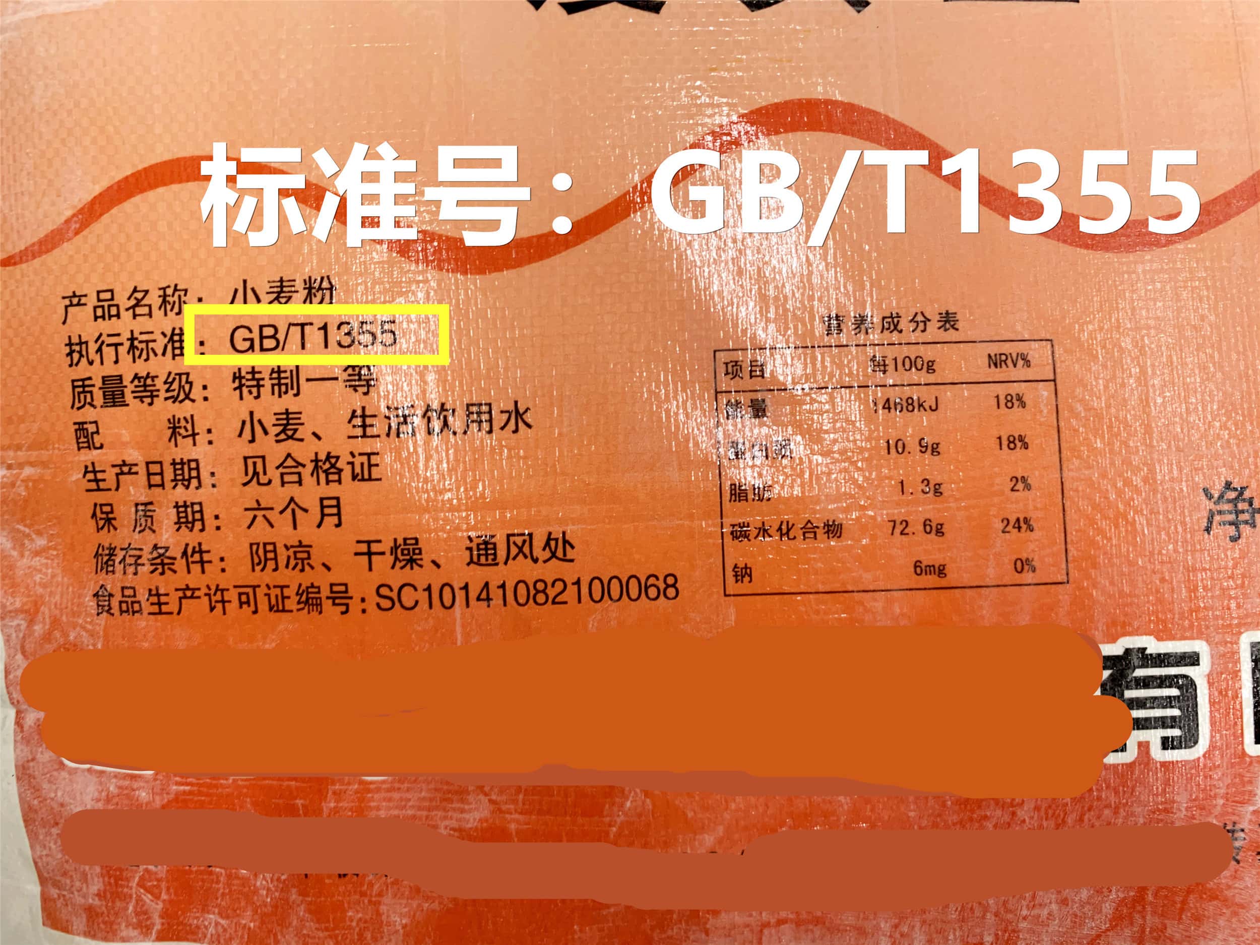 现在市面上的面粉大多都是成袋售卖,购买时很难打开挑选,所以在购买时,我们可以看包装袋上的国家标准号,每种面粉都有自己的“身份证”,能证明面粉的等级、好坏,保证面粉的质量。
