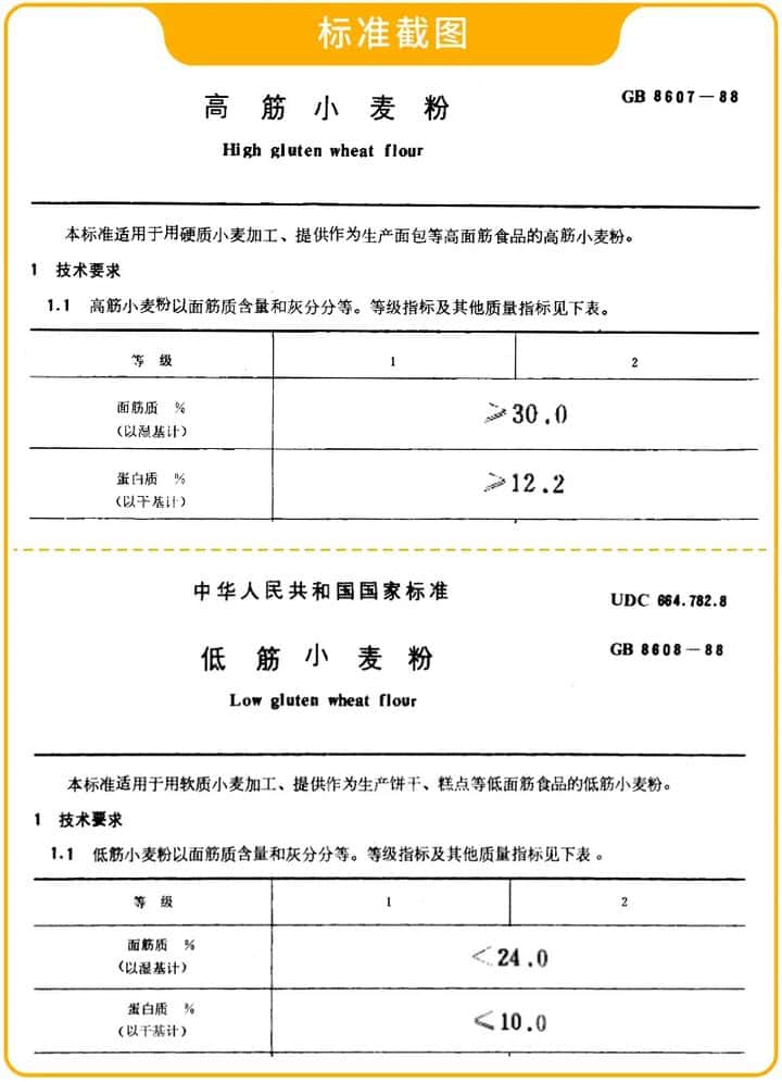 中筋面粉+适量谷脘粉≈高筋面粉;优劣辨别