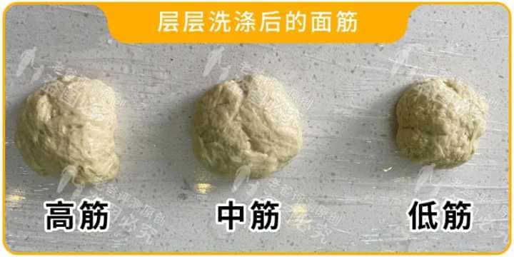 各称取 150g 面粉加入 80g 水,揉成面团醒,发 20min,水洗到无淀粉析出。